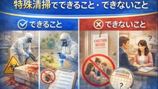 | 主な対象 | 埃、油汚れ、水垢、カビ | 血液、体液、腐敗物、死臭、害虫 |